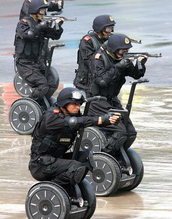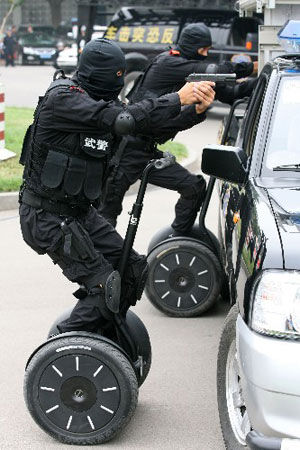 7月2日,在山東濟南舉行的奧運安保反恐演習上,特警們駕駛新型單兵反恐突擊車邊行進邊瞄準的場面,引起了人們極大興趣。這種名為“賽格威”(Segway)的突擊車,6月初出現在北京國際警用裝備博覽會的展臺上時,也引發了觀眾們的好奇心。據介紹,使用這種車子的警察局和治安部門在全球有數百家。這款小車有哪些特長呢?