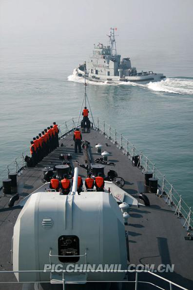 8月13日,北海艦隊某驅逐艦支隊機關組織各業務部門嚴格按新大綱要求,在黃海前哨某復雜海域對“石家莊”號新型導彈驅逐艦備戰備航、離靠碼頭、霧中航行、主炮射擊、營救落水人員、導彈應急拋射操演、橫向補給、系離水鼓、狹水道航行等12項海上實做科目內容進行實戰背景下檢驗性考核。
