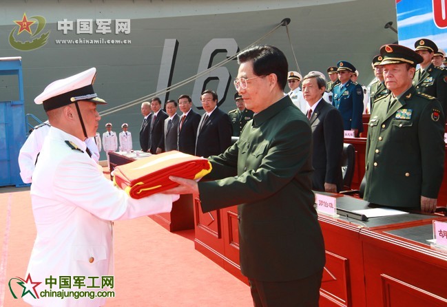 中共中央總書記、國家主席、中央軍委主席胡錦濤出席交接入列儀式并登艦視察。中共中央政治局常委、國務院總理溫家寶一同出席并宣讀黨中央、國務院、中央軍委的賀電。
