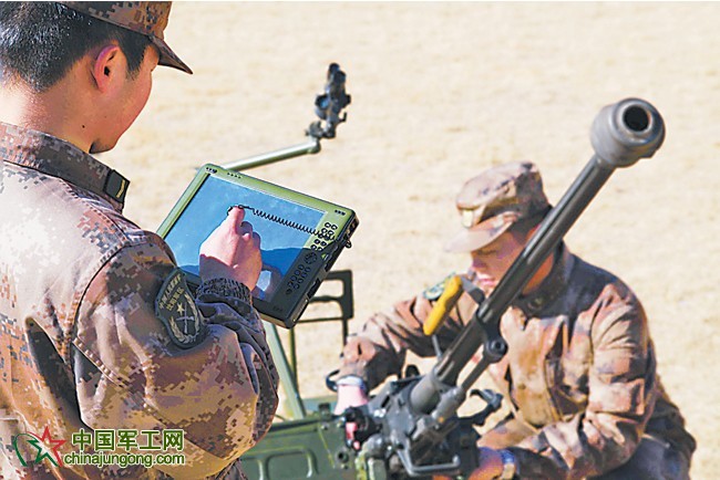 圖為戰士利用“掌上專家”維修高射機槍孫海斌攝