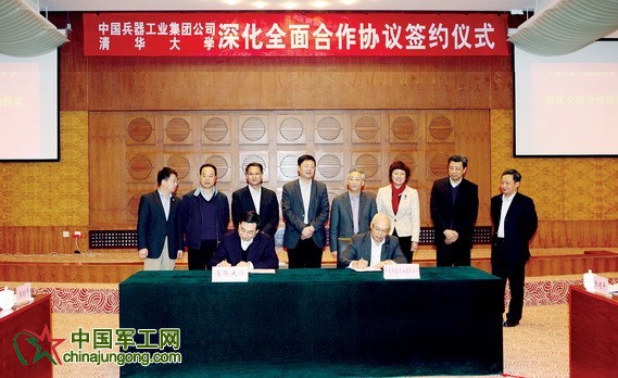 3月22日,中國兵器工業(yè)集團公司與清華大學(xué)在清華大學(xué)簽署戰(zhàn)略合作協(xié)議。集團公司總經(jīng)理張國清,黨組書記尹家緒,副總經(jīng)理焦開河、楊卓、曾毅;清華大學(xué)校長陳吉寧,黨委書記胡和平,副校長康克軍,黨委副書記史宗愷等出席簽字儀式。尹家緒與胡和平在協(xié)議上簽字。
