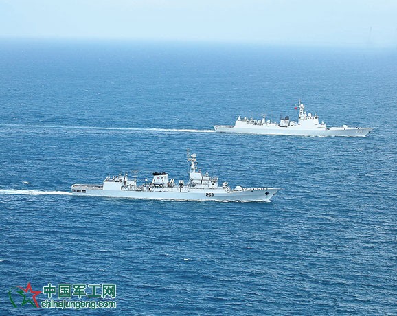 當?shù)貢r間11月22日,結(jié)束參加東盟成立50周年國際艦隊檢閱活動的中國海軍導彈驅(qū)逐艦鄭州艦,在返航途中和巴基斯坦海軍導彈護衛(wèi)“賽義夫”艦開展海上聯(lián)合演練。