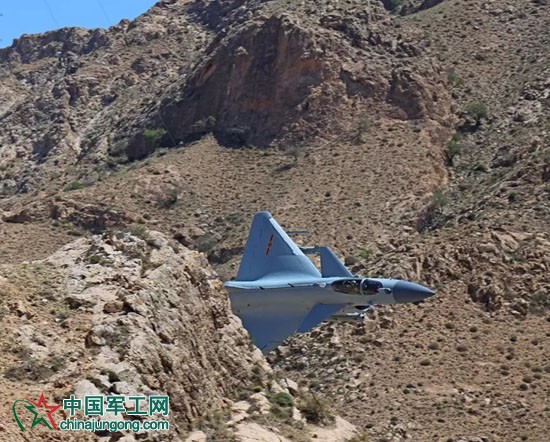 西北某地,一架殲-10戰斗機突然從峽谷中“側身”穿過。它的高度如此之低,讓人們感覺似乎是在腳下穿過;環境如此之險,甚至在狹窄的山口還隱約可見電塔的斜拉線;飛行如此之酷,大坡度機動飛行將優美的機身和超低空飛行的魅力完美地呈現出來……