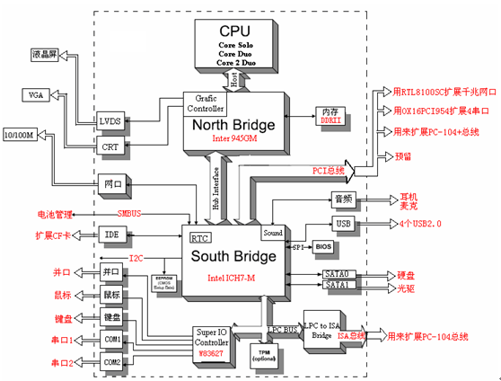 浪潮野金剛新型全加固計算機主板設計遵循ETX工業規范,ETX即Embedded Technology eXtended (嵌入式技術擴展)的縮寫,是一種工業SOM(模塊系統)應用的新標準,板上集成聲卡、VGA、LVDS顯示、網口、USB和標準的I/O CPU子系統,使得其擴展更加靈活,易于系統升級,并且最大限度縮短開發周期。浪潮野金剛新型全加固計算機設計過程中充分利用ETX特點,滿足用戶常用接口的同時,在其有限空間內,預留標準PC104PLUS擴展位(PC104PLUS標準,集成ISA和PCI總線,不但能擴展低速的串口、CAN總線,也能擴展高速的RS485\RS422接口和視頻采集卡,繼承了使用浪潮I、II型全加固產品的擴展性,滿足用戶的各種使用要求。整機預留6個航空插頭擴展位,以適應于客戶在特殊領域的航空連接器的擴展需求。其原理框架圖如下:
