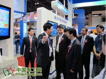 (圖為趙瑞東高級副總裁向工信部等領導介紹參展情況。)