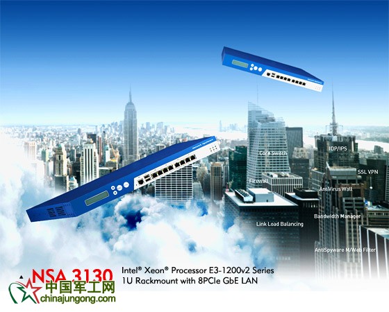 NSA 3130為1U機架式網絡安全平臺,可支持多種類型處理器,包括最新的Intel® Xeon® E3-1200v2系列處理器。NSA 3130配置8個LAN 端口,且每個端口可提供10/100/1000 Mps網絡連接,支持LAN bypass。配置1個Pcle x 8擴展槽,用戶可隨時打開擴展槽以獲得更快的網絡速度和更高性能。因此,高性價比NSA 3130是各種規模企業部署網絡安全平臺的理想選擇。