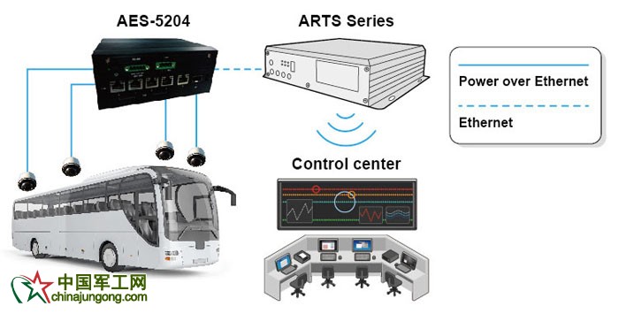 AES-5204自帶六個接口:1個1000base-X SFP千兆網接口和5個千兆網RJ45插口,其中有4個支持PoE功能,用于連接IP攝像機。當聯接到其它控制器,如磐儀ARTS系列車載監控Box PC時可最多支持8個攝像頭。另外有一個5-Pin RS-485端子接口可用于攝像頭控制接口。