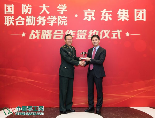 京東集團董事局主席兼首席執(zhí)行官劉強東與國防大學(xué)聯(lián)合勤務(wù)學(xué)院院長李瑞興少將互贈紀(jì)念品