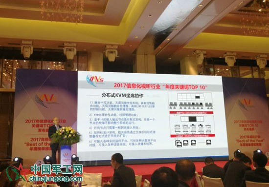 廣州魅視電子科技有限公司葉偉飛副總經理現場發布『2017信息化視聽行業“年度關鍵詞Top 10”——KVM坐席協作』。