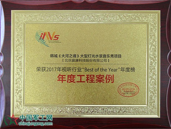 11月24日,由專業(yè)音視頻行業(yè)媒體平臺《InfoAV CHINA》舉辦的2017信息化視聽行業(yè)年度榜單“Best of the Year”隆重發(fā)布。贏康憑借“韓城《大河之魂》大型燈光水景音樂秀項目”榮獲年度工程案例獎。