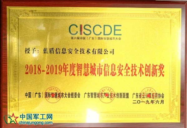 2019年第六屆中國(廣州)國際智慧城市大會智慧園區和社區高峰論壇暨2018-2019年度智慧城市建設評優活動頒獎盛典于6月20日在廣州香格里拉酒店隆重舉行,藍盾股份應邀出席會議,并憑借在智慧城市信息安全建設領域的不俗表現,榮獲“2018-2019年度智慧城市信息安全技術創新獎”。