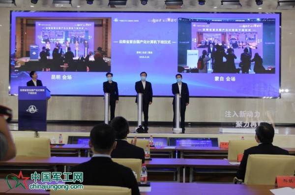 4月28日上午,昆明、北京、蒙自三地代表云端連線,共同見證了云南省首臺國產化計算機成功下線,這意味著中國航天科工集團國產化計算機紅河生產基地正式投產,也標志著云南省在國產自主信息技術領域邁向了新的臺階。
