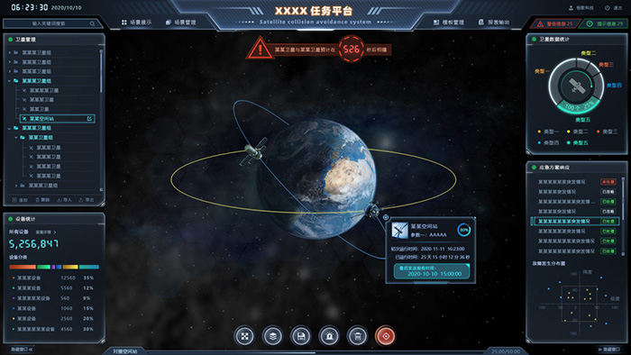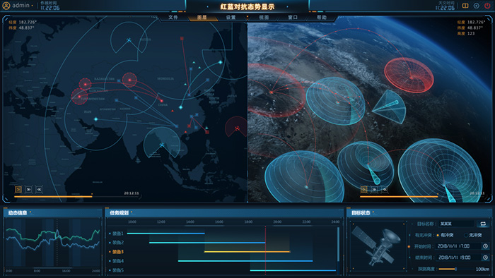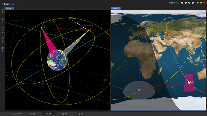 天地一體可視化平臺(FreeXGIS AeroSpace)基于FreeXGIS開發,構建了完整的空天地一體化仿真環境,能夠針對衛星發射、在軌運行、任務執行、數據鏈路傳輸、復雜太空電磁環境等相關的動態過程以及深空探測(登陸月球、火星探測)等科學活動進行仿真模擬。