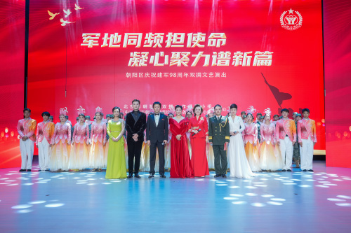 交旗儀式后,軍地雙方共賞朝陽區慶“八一”文藝演出,以歌舞禮贊建軍98周年、中國人民抗日戰爭暨世界反法西斯戰爭勝利80周年暨朝陽區第八次榮膺“全國雙擁模范城”。精彩紛呈的節目引來臺下陣陣掌聲。