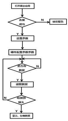 系統(tǒng)進入正常工作狀態(tài)后,硬件設備會將采集的數(shù)據(jù)源源不斷地傳回主機事先開辟的緩存內,接著對數(shù)據(jù)進行預處理,進而檢測每一幀數(shù)據(jù)的幀頭,將檢測到的每一幀數(shù)據(jù)存放入另一塊緩存,進行數(shù)據(jù)修復,用于系統(tǒng)的實時顯示和存儲操作,并將事先開辟的緩存做清空處理,準備接收新的數(shù)據(jù)。應用程序流程圖下圖所示。