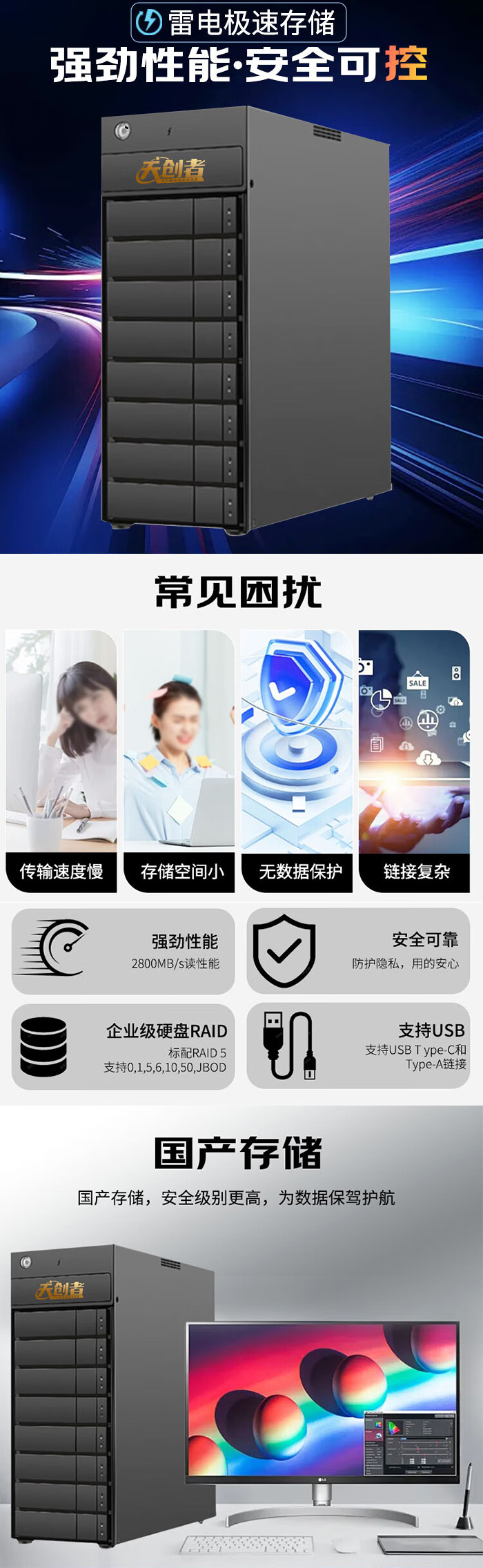 天創者雷電存儲雷電3/USB3 Type-C8盤位160TB