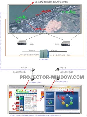 本案中,部隊采用了一套Accuon NovaVista I 系列屏幕 100寸 1X2 帶全屏互動功能的強光屏幕。系統(tǒng)連接圖如下: