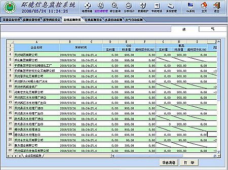 提供多種條件查詢方式和查詢結果分類、分項排序、統計最大值、最小值、平均值、匯總值等分析處理功能。提供統計各類監測數據功能,如流量統計;COD、氨氮濃度分析;COD、氨氮排放總量統計;煙氣流量統計;煙氣、煙塵、CO、SO2、NOx濃度分析;煙氣、煙塵、CO、SO2、NOx排放總量統計等。提供查詢結果打印功能