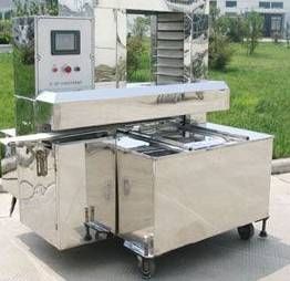 排盤機是處理月餅成型機后面的一道工序,目的把前面成型的月餅按照一定的規則序列排放在烘盤上,然后由烘盤傳入隧道爐進行烘烤。