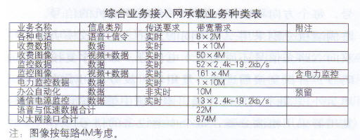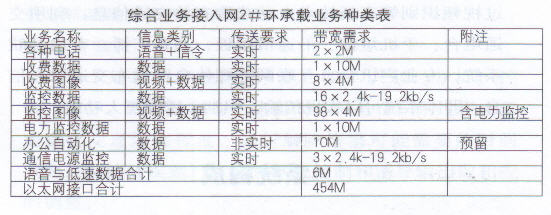 廣東省江肇高速公路綜合業務接入網承載的業務信息種類除語音外、還有大量數據和圖像,業務帶寬要求高,具體業務種類和要求如下表所示:
