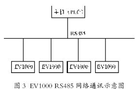 如圖3所示,在系統(tǒng)中,主機(jī)PLC 和EV1000 系列變頻器RS485總線構(gòu)成一個(gè)通訊鏈路,在協(xié)議層采用廣播式主-從協(xié)議,所有的通訊發(fā)起都從主站開(kāi)始,從站響應(yīng)主站的各項(xiàng)通訊指令。