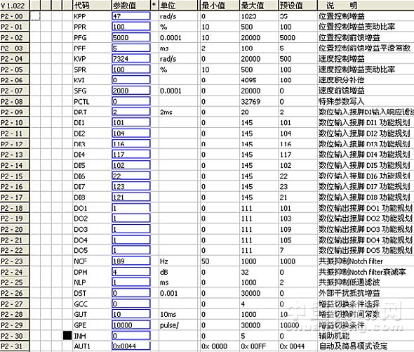 表1伺服相關參數(shù)