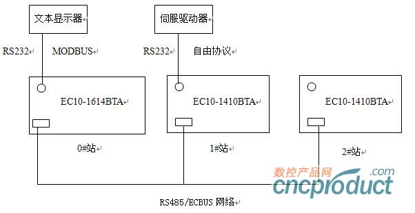 1、 利用EC10的串口1,ECBUS網絡在不增加任何硬件的情況下,實現簡易PLC間鏈接。