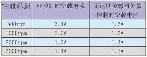 從上表可以看出在恒轉矩輸出的頻率段(0-50Hz),矢量控制的空載電流幾乎只有VF控制的一半,負載時電流也比VF小一些;而且負載切削時,VF控制在初期有很明顯的速度下降,而且空載速度和負載速度有比較大的差值。而相對于矢量控制,主軸轉速初期雖然也會有下降,但是下降值較小,并且速度會很快回升,最終空載速度和負載速度相差不是很明顯。經過上面的調試,相比較原來的VF控制,性能有了很大的改善,無論從空載電流,低速力矩,還是速度的變化,效果都是非常明顯的,完全能夠滿足數控機床的需求。