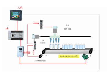 在灌裝過程時(shí),不論在快速插入瓶口和返回區(qū)間Y軸始終和主動(dòng)軸的編碼器命令同步對(duì)應(yīng),同樣伺服馬達(dá)的速度和藥瓶的輸送速度保持一致,即為同步灌裝要點(diǎn)!