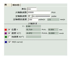 當(dāng)模擬器產(chǎn)生的主動(dòng)軸速度曲線和X水平跟蹤軸的速度曲線不一致時(shí),使用者可以通過修正“導(dǎo)程”,或者點(diǎn)擊“下一步”修正“主軸脈沖數(shù)5-84”,來保證兩軸的速度曲線盡最大可能的保持接近。只有這樣才能保證同步的穩(wěn)定性和精度!