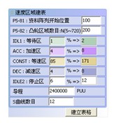 對(duì)于水平跟蹤X軸而言,主要保證速度上和主動(dòng)軸編碼器速度追隨,追求的是速度保持主動(dòng)軸一致。建造凸輪表格和曲線方法如下:
