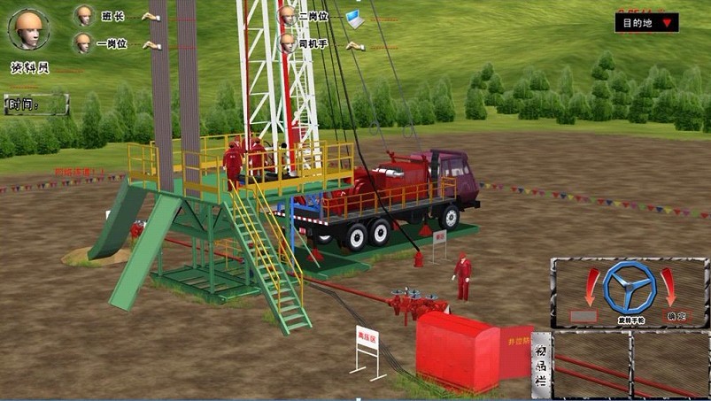 在對石油行業從業人員進行井控(防井噴作業)培訓時,不易找到場地,也不易重建溢流、井噴現象。為了解決這個問題,神州普惠及時推出了“井控模擬仿真培訓系統”。系統利用三維場景重建技術低成本、真實復現溢流現象,在三維場景中有相應的虛擬人物來“代替”學員進行“操作”。