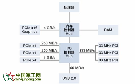 圖3:所有PCI Express插槽具有專用的帶寬來連接PC內存,無需像傳統PCI那樣共享帶寬