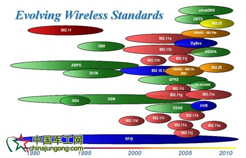 同時,各種無線通信標準的不斷涌入也同樣使人感到束手無策,每個公司和組織都在根據自己特定應用的需求來制定和優化不同的標準和協議,這就使得大 量的新標準如雨后春筍般出現,而每個標準的生命周期卻被大大的縮短。如果通過時間軸來顯示各種標準,許多標準的演化過程會變得十分清晰,而新標準的開發也 正以前所未有的速度進行著。如下圖所示,在2000年之前,并存的標準只有四五種,并且生命力較長,到今天,這種情況已被層出不窮的各種標準所顛覆。
