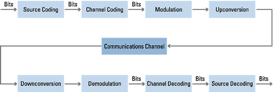 讓我們先來了解一下典型的通信系統所包含的主要功能模塊,這將幫助更好的理解整個設計和測試的流程。