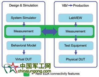 由于在產品開發過程中提高研發能力是企業的當務之急,并行設計和測試的理念已經遍及整個電子行業。實行這一目標的一個關鍵方法是增加電子設計自動化(EDA)仿真軟件和測試軟件間的連通性,并一直貫徹至組件級。