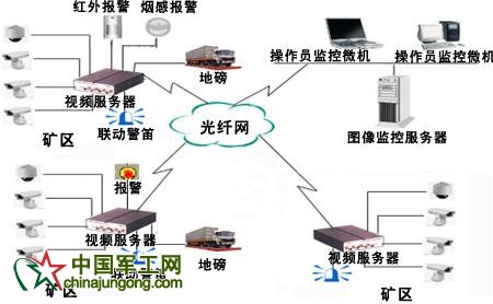 系統(tǒng)主要由礦區(qū)監(jiān)控前端和監(jiān)控中心構(gòu)成。